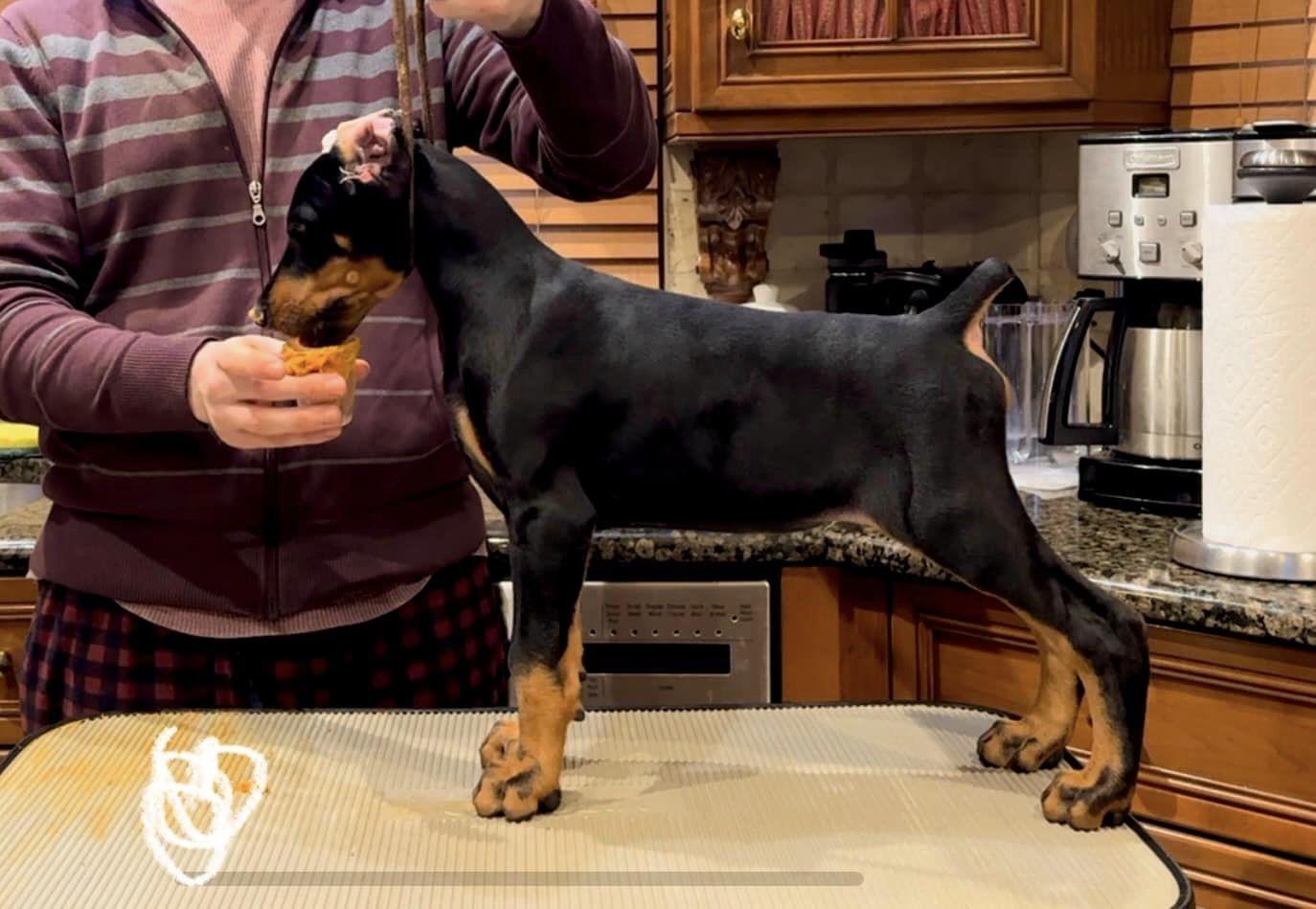 Blush is a female Doberman Pinscher. Carefully selected as a great representative of her breed, Joseph decided to make her part of their program. Joseph has passed Good Dog’s screening process, which involved a review of their breeding practices, environment, and the mental and physical health of their dogs.