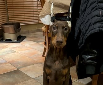 Ruby is a female Doberman Pinscher. Carefully selected as a great representative of her breed, Joseph decided to make her part of their program. Joseph has passed Good Dog’s screening process, which involved a review of their breeding practices, environment, and the mental and physical health of their dogs.