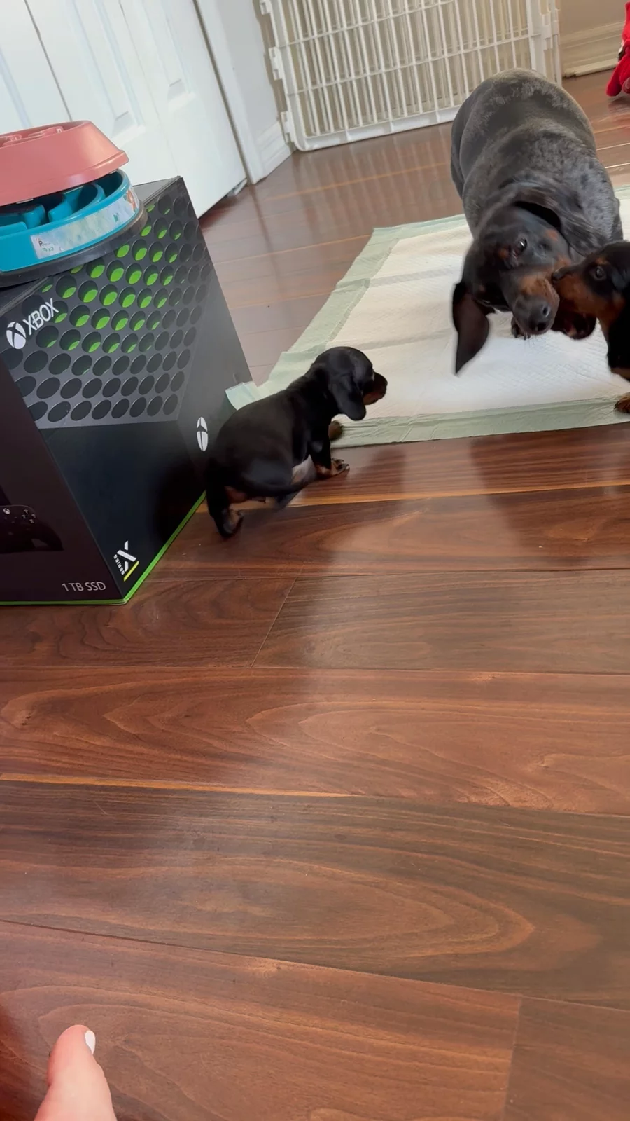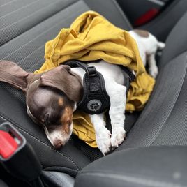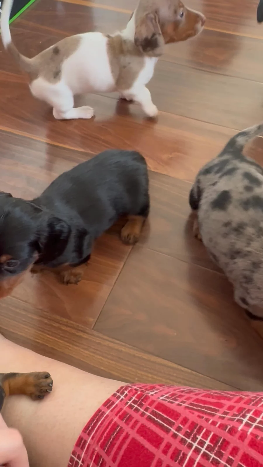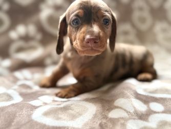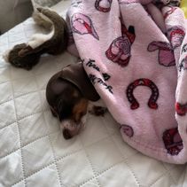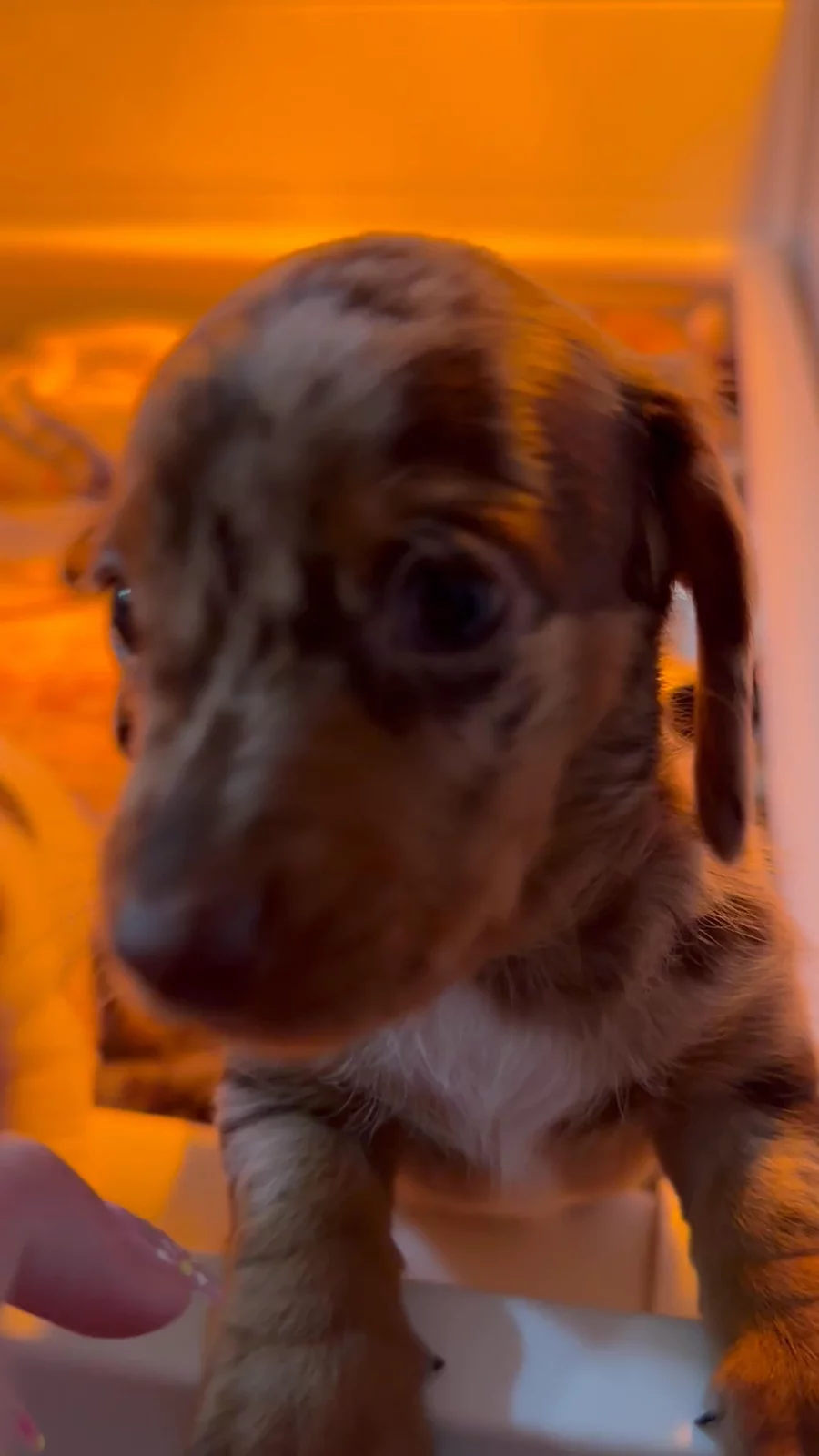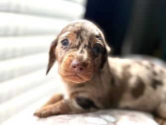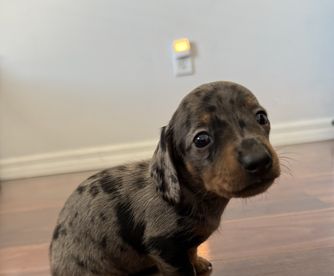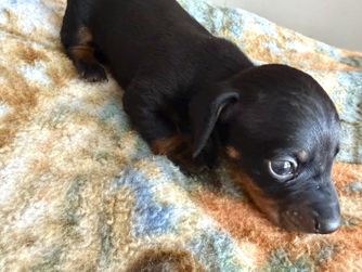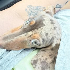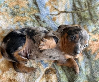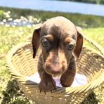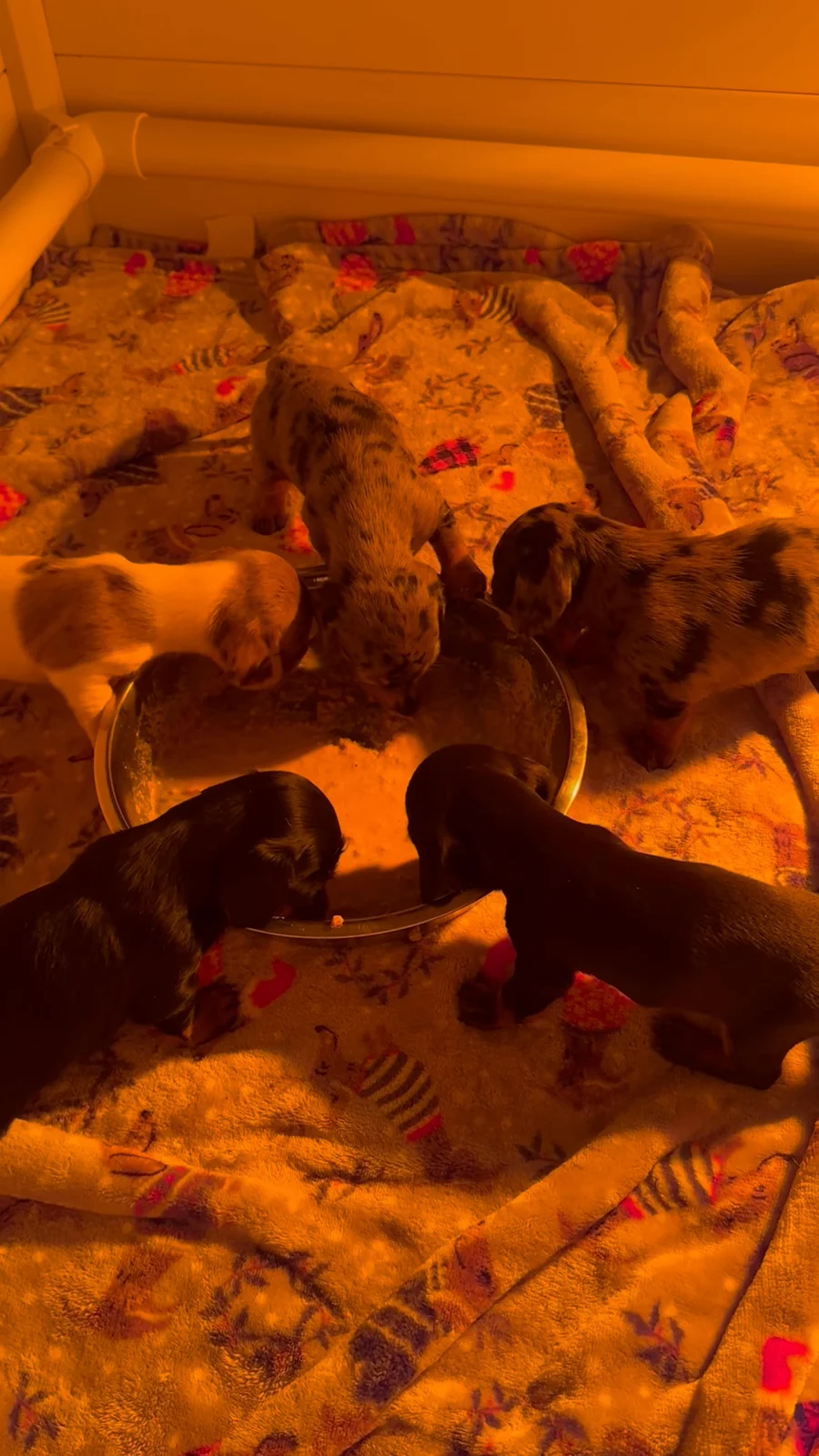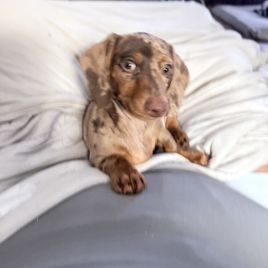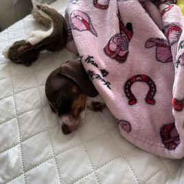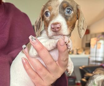 Holly was excellent to work with in getting our baby. This has been my dream dig for over 20 years. She made it happen and I didn’t have to worry about being scammed like happens with people on marketplace. I saw where she was raised. She raised with a family and children and not a puppy farm where people have multiple dogs and keep them locked up all day. My puppy came home with done great potty training skills and she only has an accident a few times a week. Holly was great in allowing me to pick “Tink” up at a later date due to our family vacation. She also sent us home with an adorable dachshund goody bag with puppy food, chew bones, toys, puppy pads etc. Tink has a wonderful personality we could not be happier with our breeder Holly!