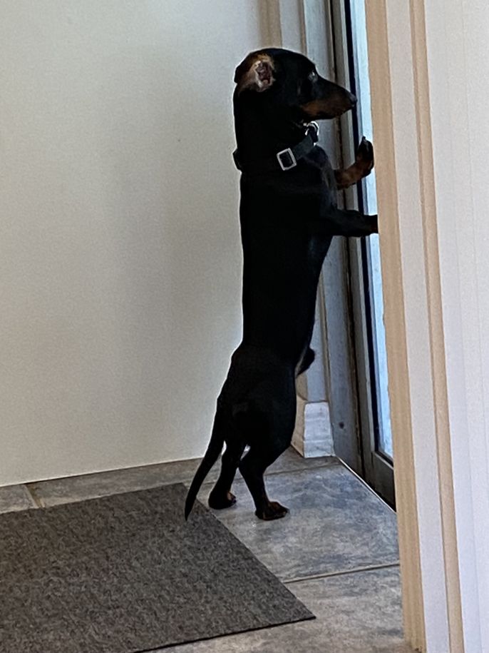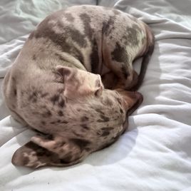 Finn is a smooth coat, reverse black and tan Dapple. We love him to death. He is very smart and outgoing, knows how to ring the doorbell to go potty. He is also very muscular, and very active. He would run all day outside if you gave him the chance. He is both AKC, and CKC registered. Finn is up to date on all his vaccines, and rabies shots. He is taking Simparica-Trio for prevention.