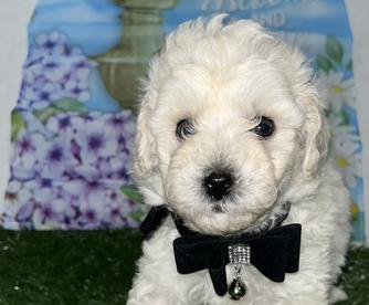 “Also included is a puppy package with a blanket, toy, small bag of puppy food, puppy carrier, a diamond collar with bow tie/hair bow, AKC/CKC puppy package kit, and registration, and a health guarantee. All deposits are needed to reserve puppies. They are included in the total balance.”