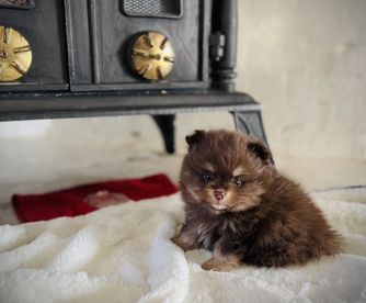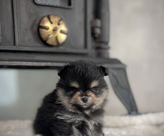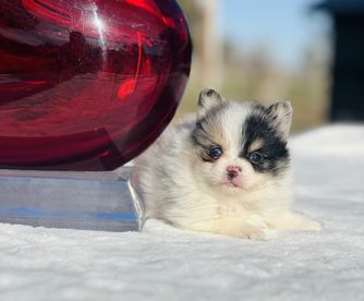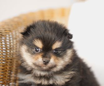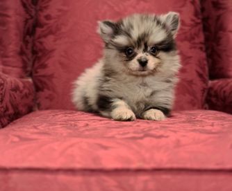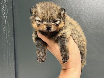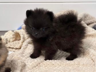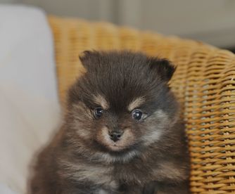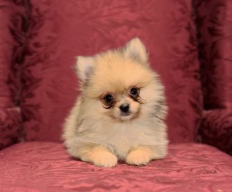 Pomeranian puppies include red, orange, cream, black, blue, white, chocolate, wolf sable, beaver, tri-colored, beaver sable, black and brindle, black and tan, blue and tan, blue brindle, blue merle, blue sable, brindle, red sable, chocolate and tan, chocolate merle, chocolate sable, orange sable, and cream sable. Colors will vary depending on the parent dogs.