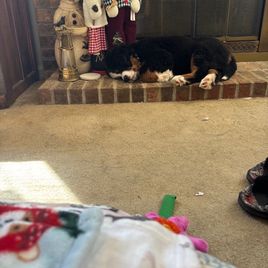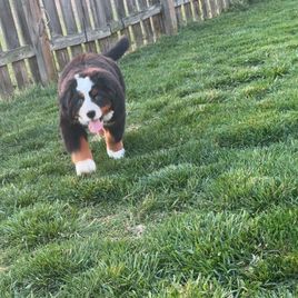 Gia is an AKC registered Bernese Mountain Dog. She weighs 77 pounds and is very loving. She loves attention from people and does well with other dogs. She has good genetic testing and she has preliminary OFA testing with good hips and normal elbows.