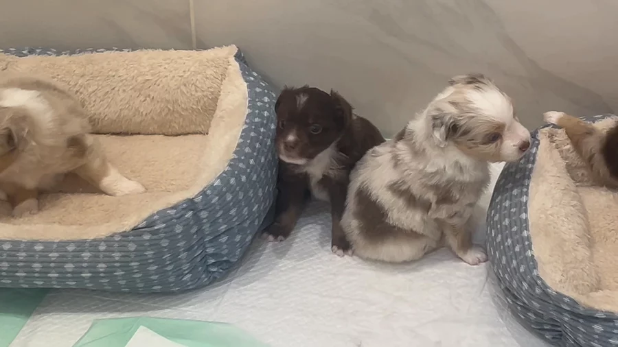 Our puppies include black & white, red & white, blue merle, black tri, red tri, red merle, red, and black. Colors will vary depending on the parent dogs.