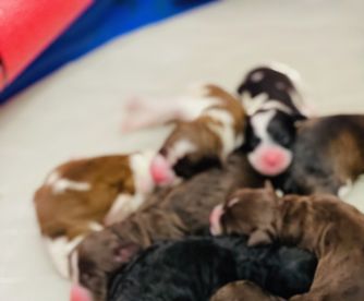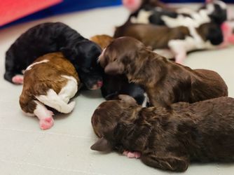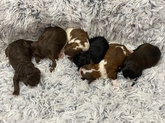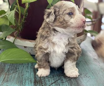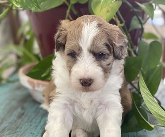 ““2 year health guarentee, deworming, vet checked, 1st and 2nd round of shots, health tested parents, lifetime support before and after, crate trained, will start potty training, and care package full of goodies! $200 deposits are required to be placed when born. All deposits go towards price.”. All our Mini Aussiedoodles are the same price regardless of sex, color or age.