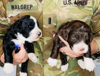 We fell in love with the Aussiedoodles for their hypoallergenic, lovable personalities & properties of the Poodle together with the playful nature of the high intelligence and trainability of an Australian Shepard. The loyalty and affectionate personalities far exceed any other breed of dog for a family pet.