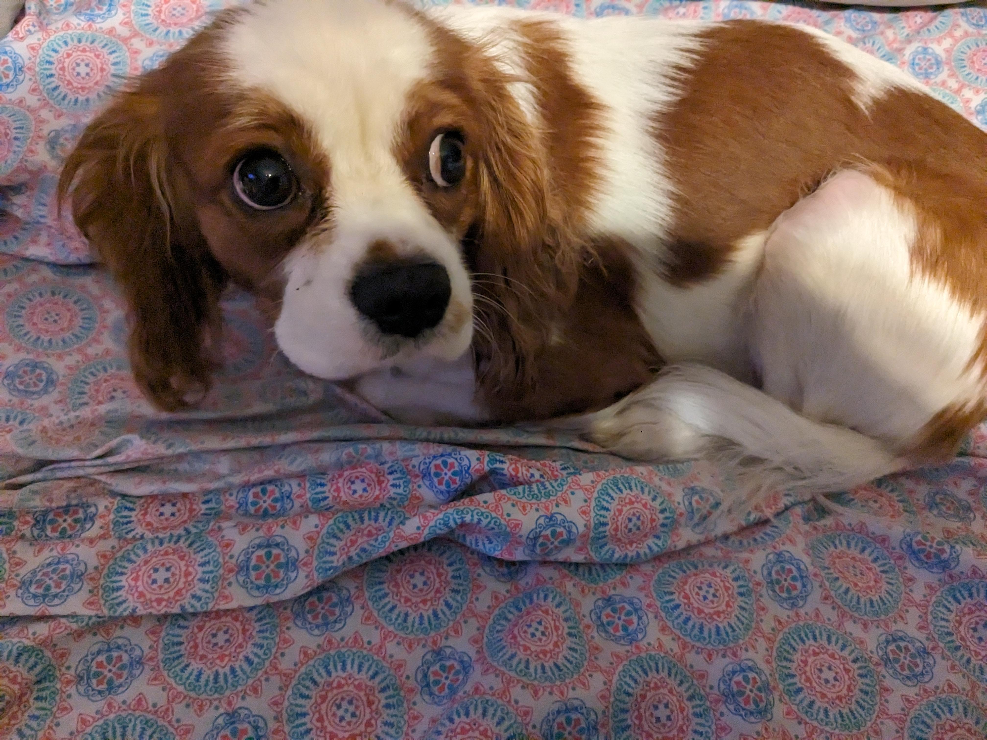 Schuyler is a female Cavalier King Charles Spaniel. Carefully selected as a great representative of her breed, Christy decided to make her part of their program. Christy has passed Good Dog’s screening process, which involved a review of their breeding practices, environment, and the mental and physical health of their dogs.