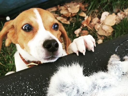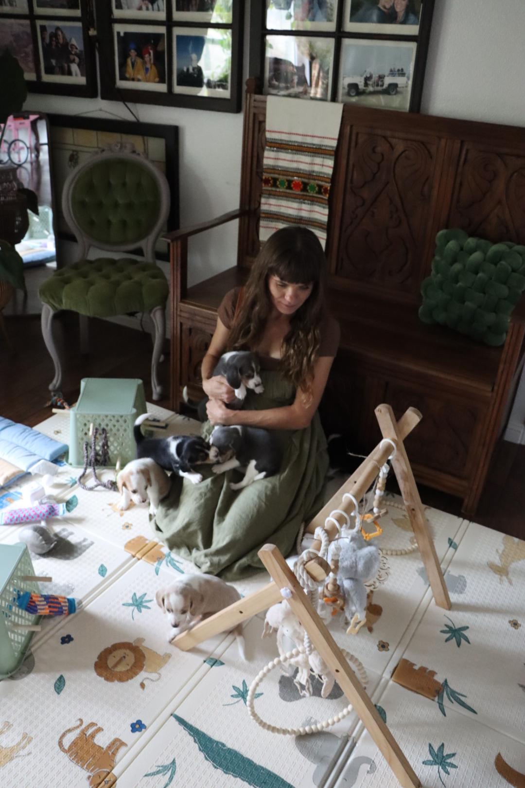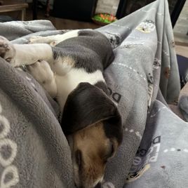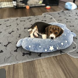I'm Irina V., the breeder behind Homegrown Beagles located in Susanville, CA. They love chasing after the scent of rabbits. Hunting season is probably their favorite. When we aren't out hunting, they love going on hikes with us and camping. Chasing each other in the yard at home is what they love most. While they love rabbit hunting, they adore our cats and love to lick them. Living on a farm is fun for them. They are happy, funny, up for adventure babies.