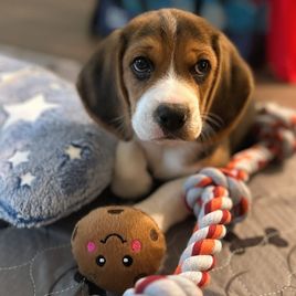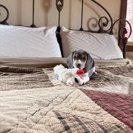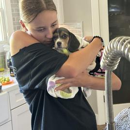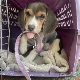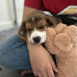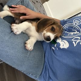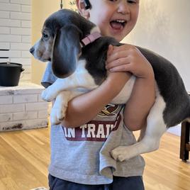 I found Irina by searching the web for a beagle breeder and was so blessed to find Irina and Homegrown Beagles. Irina answered all my questions regarding her puppies promptly. Upon reviewing her puppies that were available, we immediately fell in love with Blue (Penny)!! Penny looked to be so sweet, soft and cuddly. Penny was all that and so so so much more. Irina even sent me a video of our sweet girl. Purchasing the puppy was beyond easy. At nine - ten weeks Penny is so smart she can sit, stay, come, is crate trained and mostly potty trained. Penny is great with other dogs and other people and is loved anywhere she goes. Thank you so much, Steve, Marta, Emma and Matthew Barker