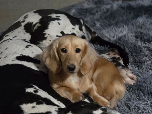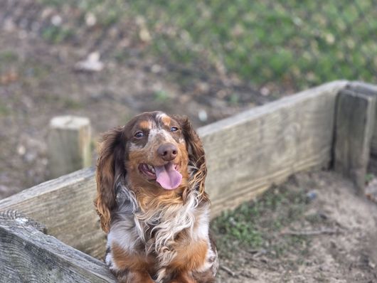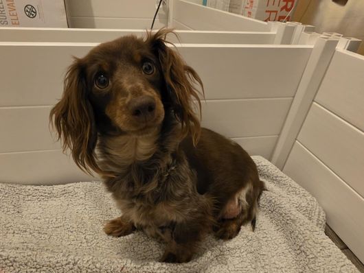 Nova is a female Dachshund. Carefully selected as a great representative of her breed, Julie decided to make her part of their program. Julie has passed Good Dog’s screening process, which involved a review of their breeding practices, environment, and the mental and physical health of their dogs.