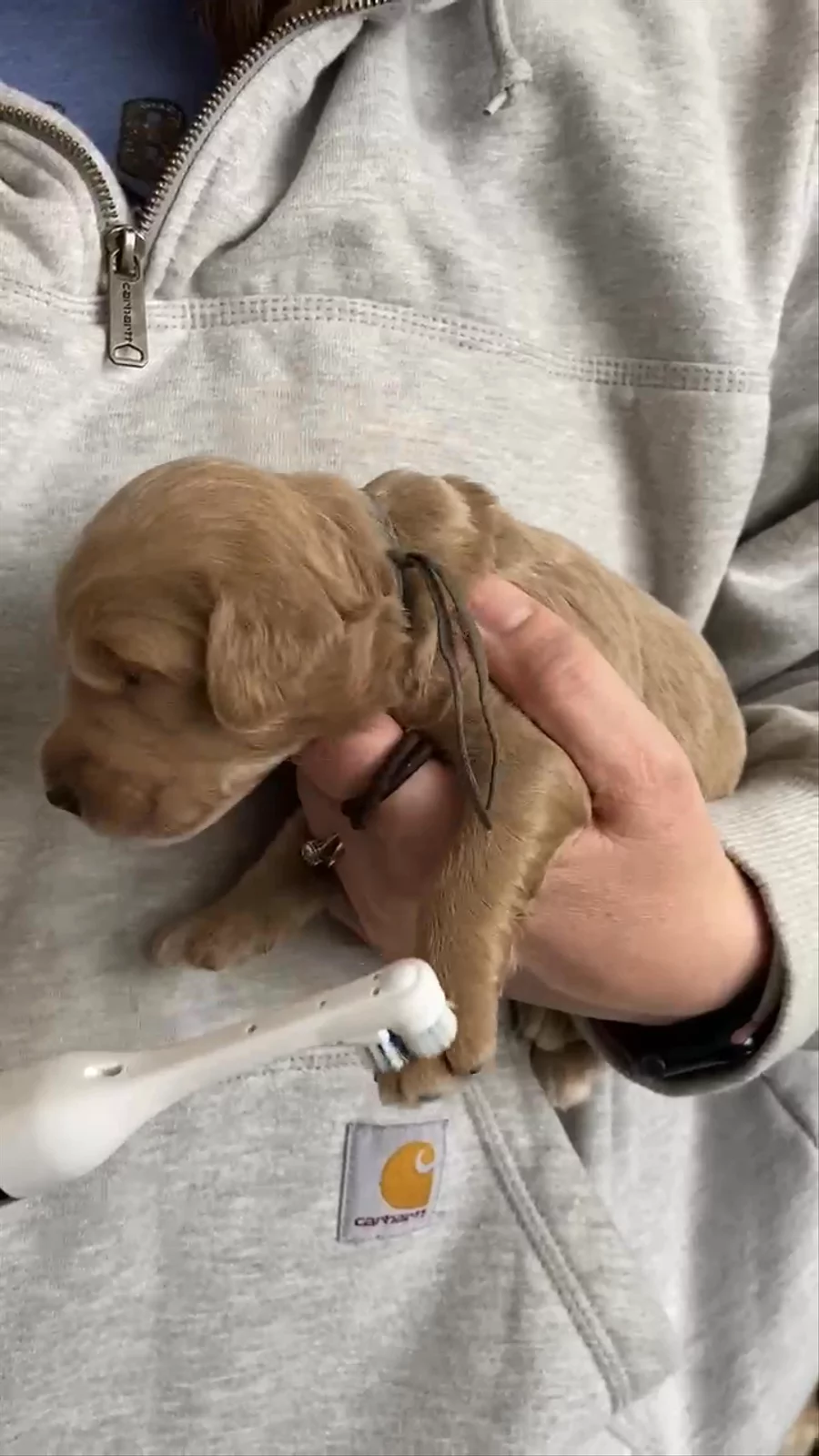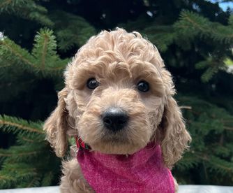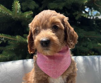 Primrose is a female Goldendoodle. Carefully selected as a great representative of her breed, Somer decided to make her part of their program. Somer has passed Good Dog’s screening process, which involved a review of their breeding practices, environment, and the mental and physical health of their dogs.