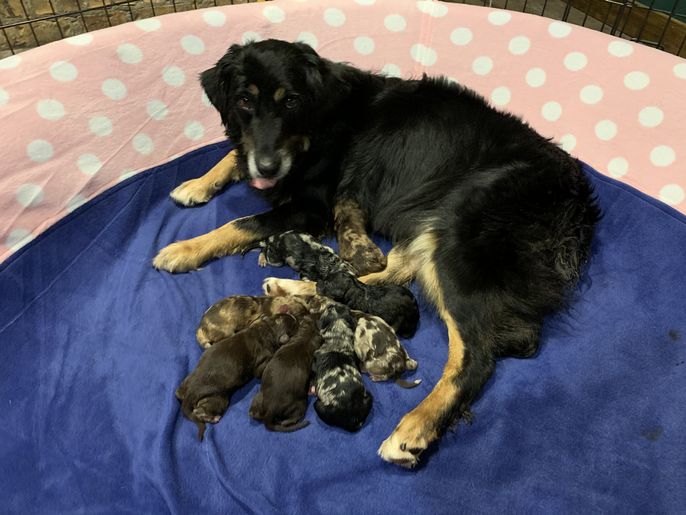 We wanted to put our passion for Australian Shepherds and Aussiedoodles to good use. Breeding healthy, happy puppies is our way to give back to the breed and the families who love them. We want nothing more than to see each of our dogs and puppies shine.