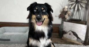 This handsome boy is full of personality and charm. With his striking blue eyes, soft tri-colored coat, and happy grin, he turns heads everywhere he goes. Murphy is playful, smart, and always up for an adventure—whether it’s a game of fetch, a car ride, or just hanging out by your side. He’s also a total sweetheart who loves cuddles and attention.