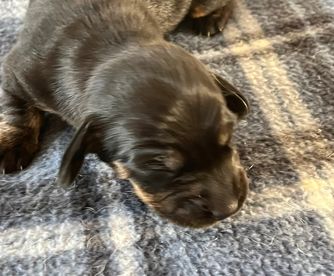I specialize in small standard size dachshunds in the 16-20+ pound range. I have a very small breeding program and give lots of individualized attention to every puppy. I'm literally on the floor with them from the time they're born, birthing, caring for, playing, and napping with puppies snuggled up with me. Call 978-754-7110 for more info and a follow up video chat.