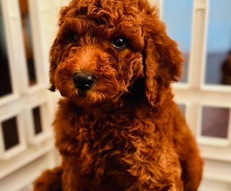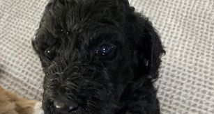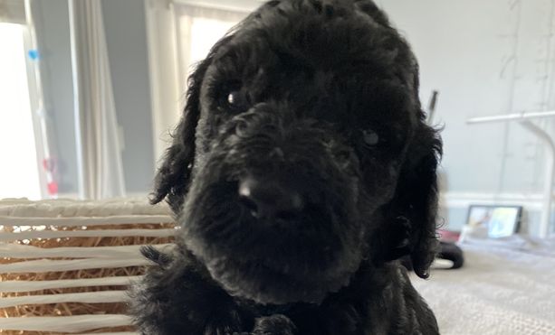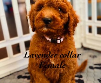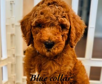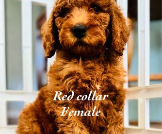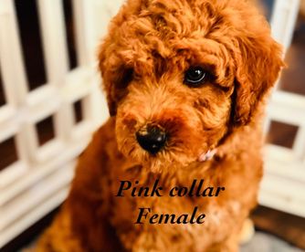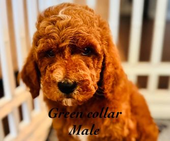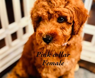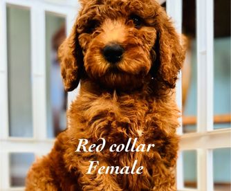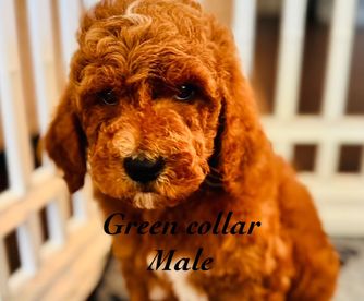 Our Poodle puppies include black, red, parti, and brindle. Double Doodle puppies are red. Colors will vary depending on the parent dogs.