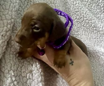 I'm Kimberly D., the breeder behind Honey Creek Doxies located in Senoia, GA. We love this breed and the experience of having litters! Our mission is to raise pups that are set to become the best companions. We raise our litters in our home to help set the foundation for happy and confident puppies to transition well into their forever homes. It’s a privilege to have the opportunity to make an impact on each individual puppy! GREAT HOMES ARE A MUST!