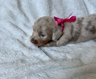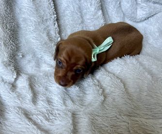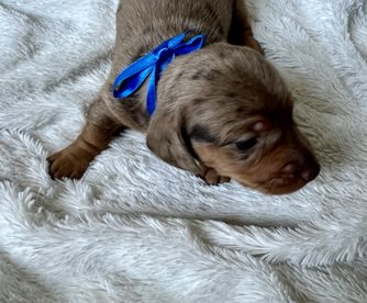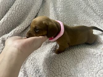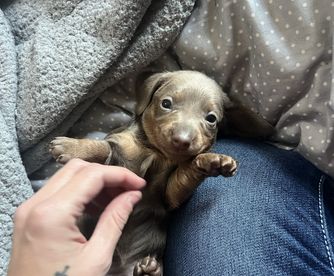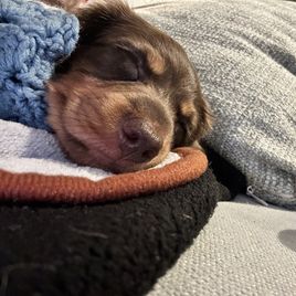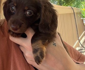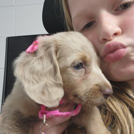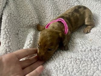 Kimberly was excellent in communicating with me on our new puppy. She responded to my inquiry very quickly and allowed me to ask any questions that I had about the puppy. We quickly determined that she was the puppy we wanted and Kimberly was great in helping us meet in a great location so we could get her. I could tell she was so good with her dogs and cared very much about them. I love this little pup already, and so happy to have found her with Honey Creek Doxies. My little Poppy is a doll and we are enjoying every minute with her.