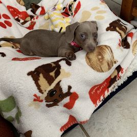 Kimberly was so responsive and helpful during the process, whether it was questions about the breed, coordinating how to get our puppy from Atlanta to Boston, she made the whole process so easy. Better yet, even after taking home our puppy, Kim consistently checked in on our little guy and helped us in the puppy stage. I cant imagine a better process and we looked for a long time and nothing seemed to work so I cant help but think it was all meant to be.We LOVE our Enzo so much and his lineage is perfect and het could not be a better looking dachshund