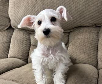 My experience with Emily from Honey Doux Southern Paws was no short from amazing! Emily was very responsive, personable, helpful, and well-educated from start to finish! Given that my family lived 6 hours away from LA, Emily and family were more than willing and happy to meet us halfway to deliver our new sweet pup! Upon pick-up, my sweet Finn was given to me along with a blanket from home to make him feel more comfortable, a small packet of food, pee pads, and all his vaccine records all very nicely wrapped up into a little goodie bag. Emily definitely knows what she is doing with her pups. Finn has been very sweet loving and very well potty trained given that he is only nine weeks old. Finn was also thankfully trained by Emily to sleep through the night in a crate, so he has no trouble doing that with us! I could go on and on about my experience! I am so lucky I found a breeder like Emily to get my sweet pup from. You can tell how much she truly cares, and that is a prospective dog owner’s dream!!! Would highly recommend looking into Emily and Honey Doux Southern Paws if you are looking for a well taken care of breeder for ur schnauzer! 🩷🩷🩷