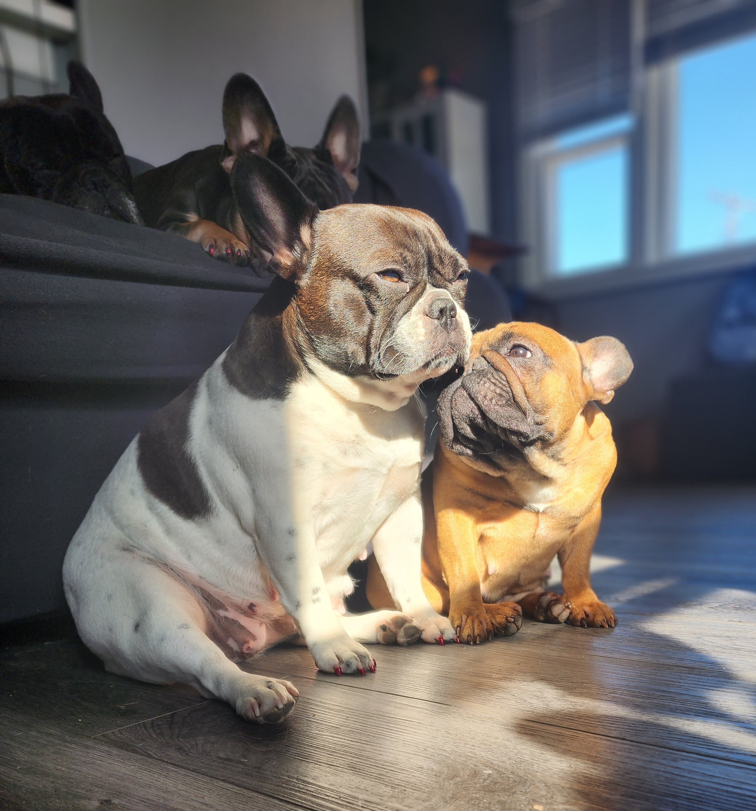 Pidge is a female French Bulldog. Carefully selected as a great representative of her breed, Ashley decided to make her part of their program. Ashley has passed Good Dog’s screening process, which involved a review of their breeding practices, environment, and the mental and physical health of their dogs.