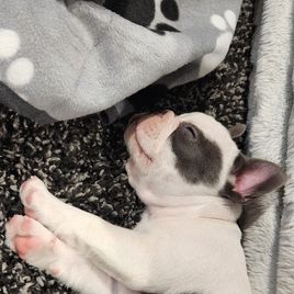 Finn is a male French Bulldog. Carefully selected as a great representative of his breed, Ashley decided to make him part of their program. Ashley has passed Good Dog’s screening process, which involved a review of their breeding practices, environment, and the mental and physical health of their dogs.
