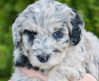 Georgia is a miniature poodle with a beautiful merle coat. She has the most loving personality and is a favorite in our house.