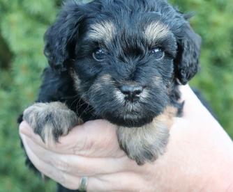 Our Cavapoo puppies include red, white, and apricot. Schnoodle puppies include merle, apricot, black and tan, and parti. Colors will vary depending on the parent dogs.
