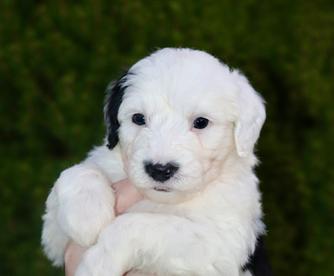 Dolly is an AKC Old English Sheepdog. She was the first dog to have puppies in our program. Her sweet personality, calm temperament and friendly disposition make her a family favorite. She loves nothing more than to be petted and will stand there as long as you continue to pet her.