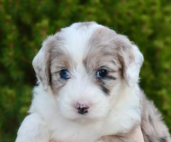 Penny is a stunning red tri miniature Australian shepherd with blue eyes. In true Australian shepherd style, she is extremely intelligent.