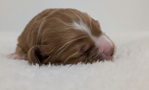 Cooper is a male Cocker Spaniel. Carefully selected as a great representative of his breed, Michael decided to make him part of their program. Michael has passed Good Dog’s screening process, which involved a review of their breeding practices, environment, and the mental and physical health of their dogs.