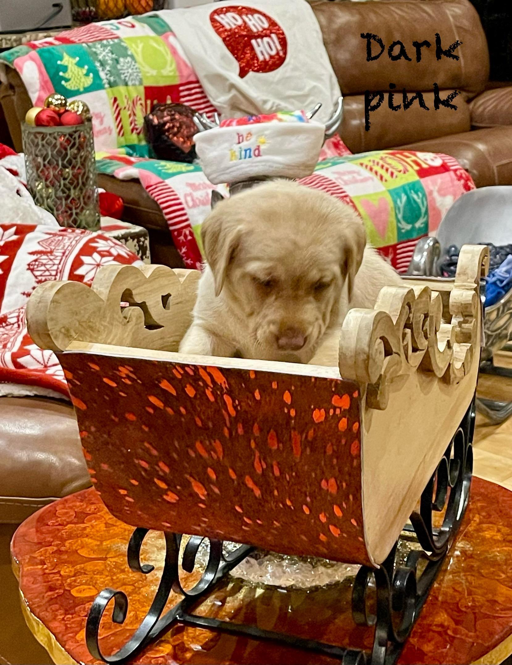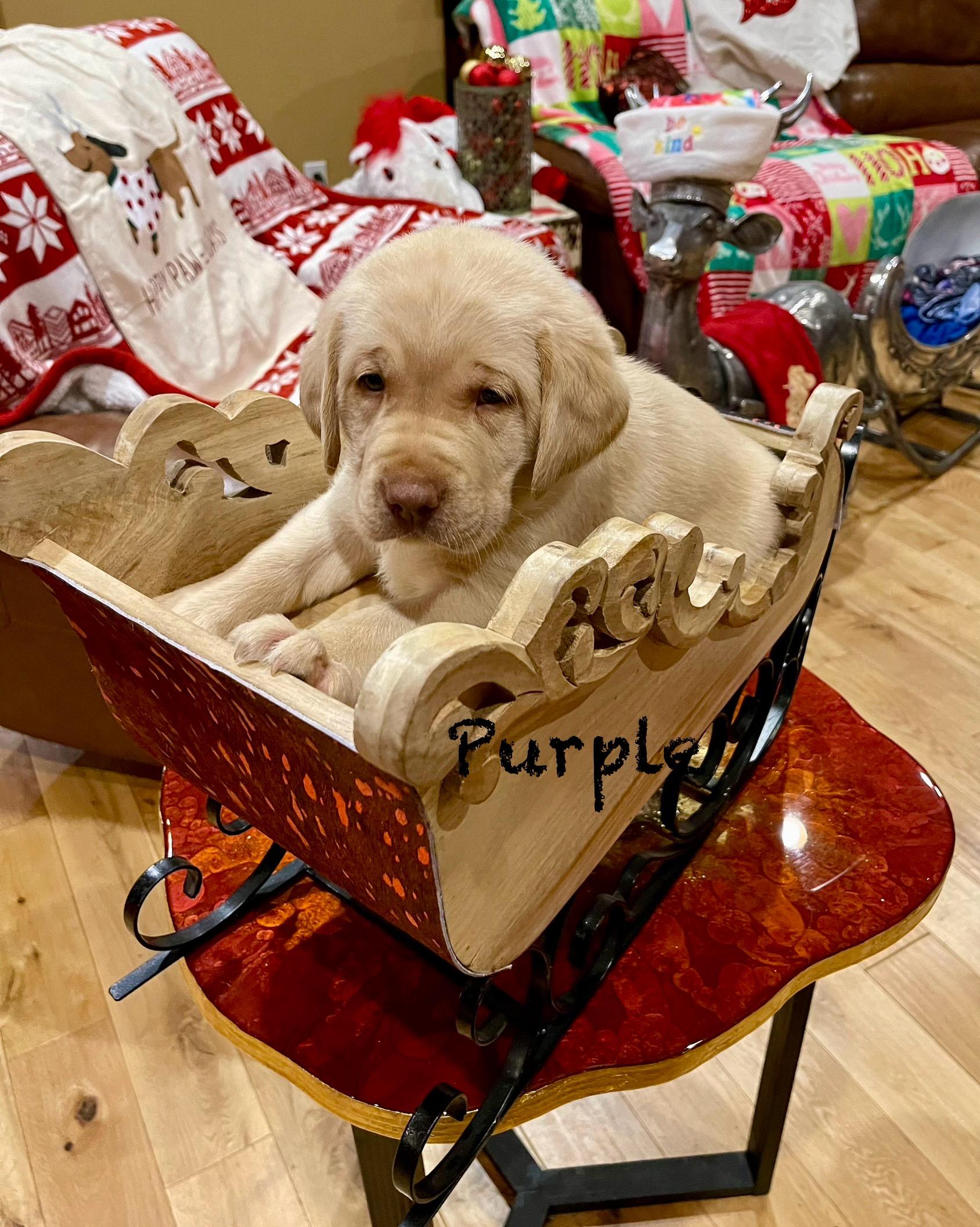 Purple girl is 14lbs at 8 weeks. She is sweet and spunky. She enjoys all the dogs on the ranch, however, she is a big-time snuggler