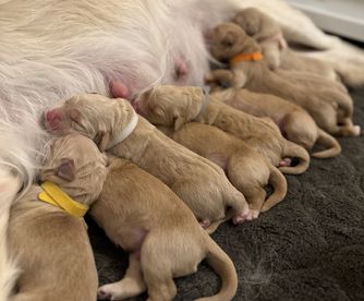 Our puppies include dark golden, golden, and light golden. Colors will vary depending on the parent dogs.