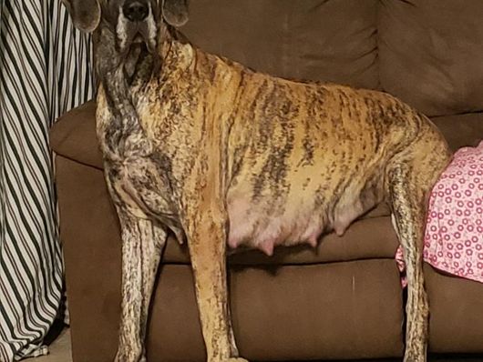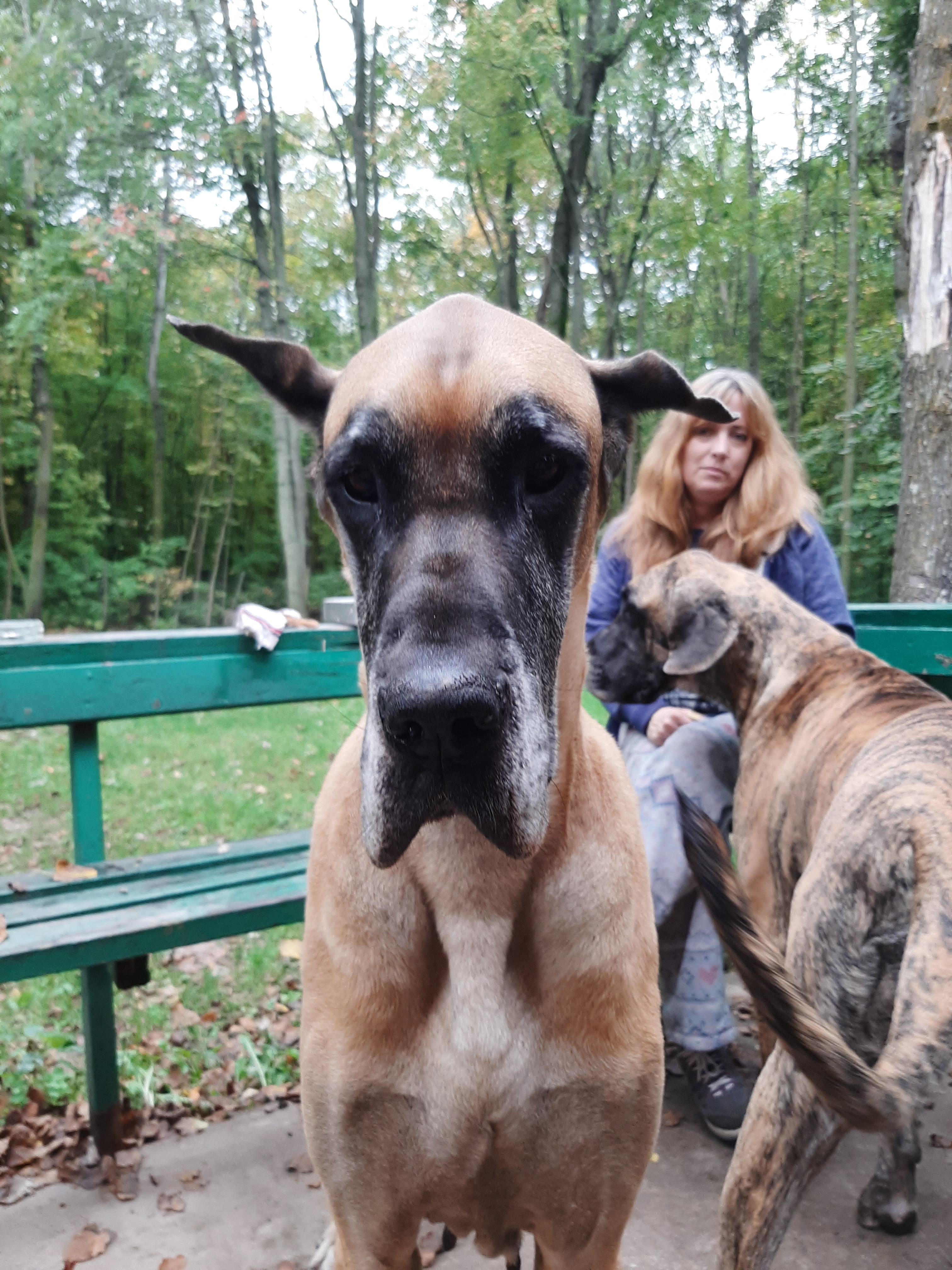 Stella is a female Great Dane. Carefully selected as a great representative of her breed, Joan decided to make her part of their program. Joan has passed Good Dog’s screening process, which involved a review of their breeding practices, environment, and the mental and physical health of their dogs.