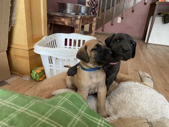 Our puppies include brindle and fawn. Colors will vary depending on the parent dogs.