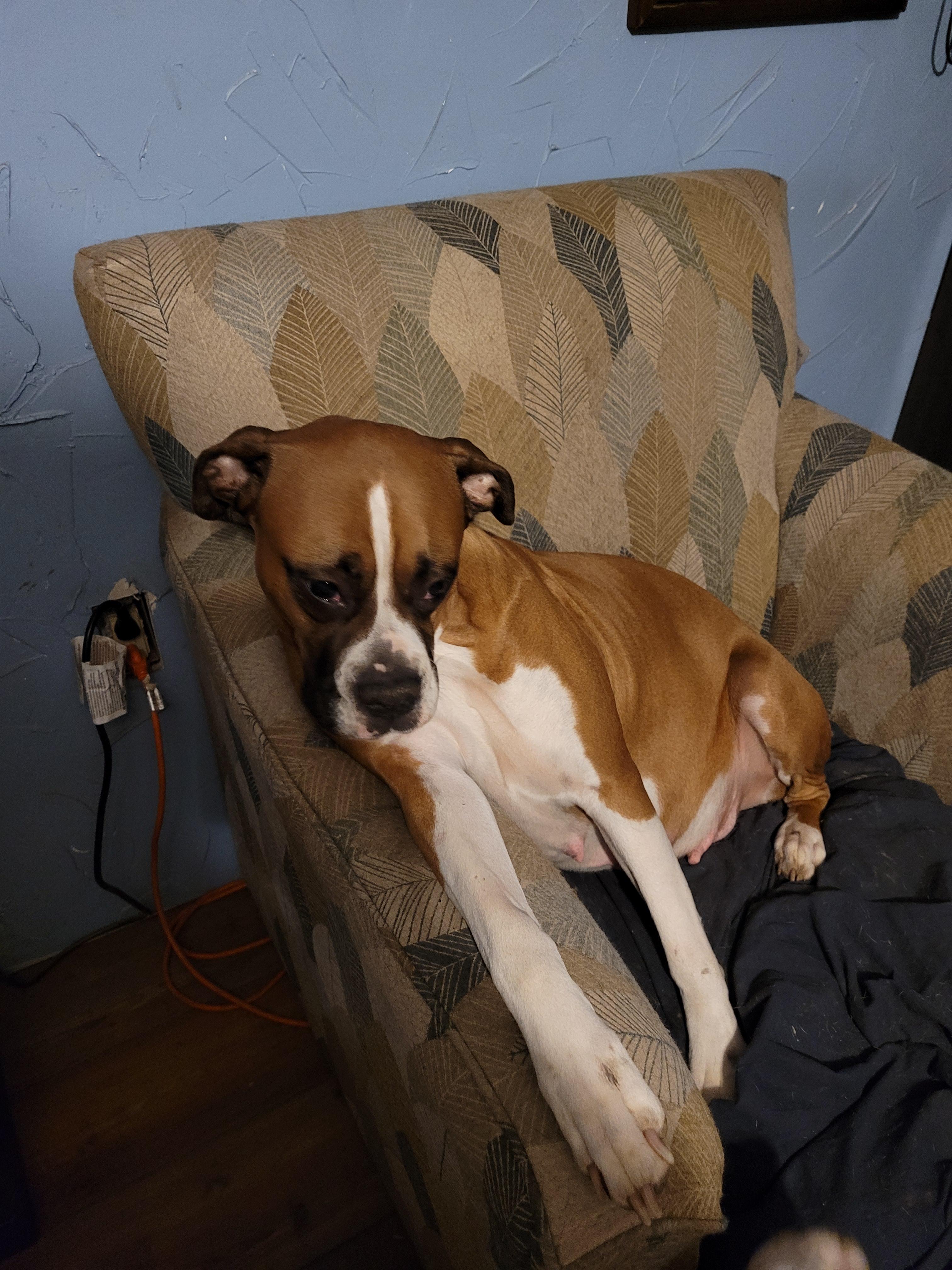 Lambeau is a male Boxer. Carefully selected as a great representative of his breed, Bill decided to make him part of their program. Bill has passed Good Dog’s screening process, which involved a review of their breeding practices, environment, and the mental and physical health of their dogs.