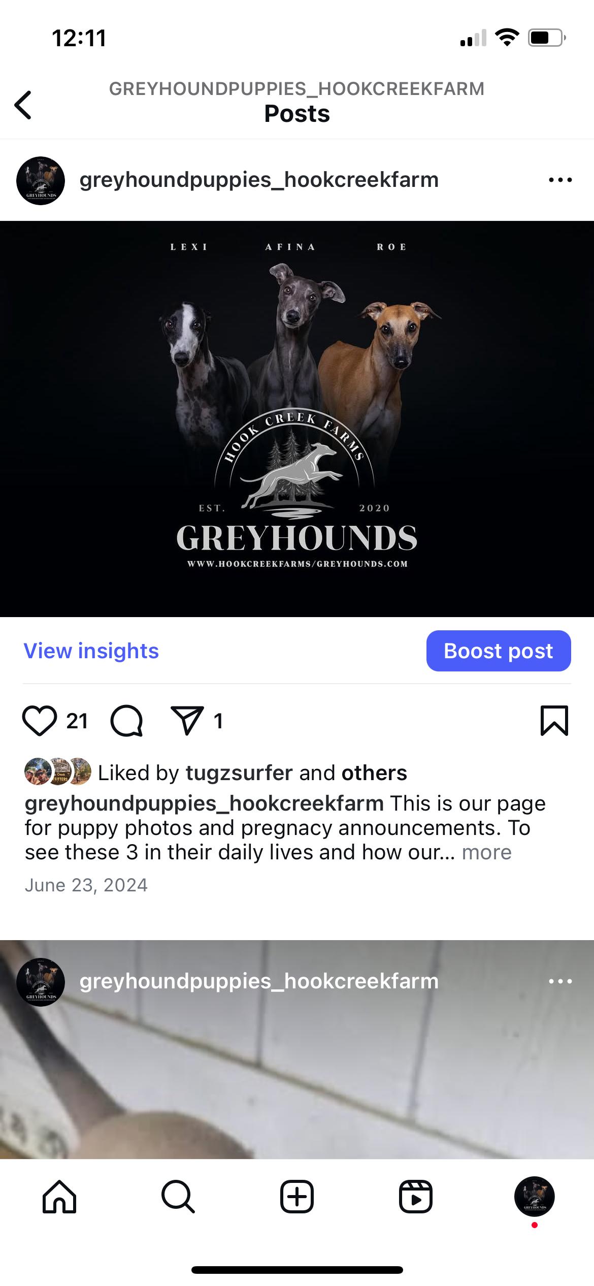 I'm Angela H., the breeder behind Hook Creek Farms located in Cedar Glen, CA. Serious interest only. No payment plans. If you are interested in a puppy please be ready to purchase/pick up when they are ready, plan a date and time to pick up and be ready to pay in full. Otherwise just say interest in program. My time is valuable please dont waste it with casual curiosity. Ours are AKC with race backgrounds. We do ENS and ESI. Parents Genetic tested greyhound panel.