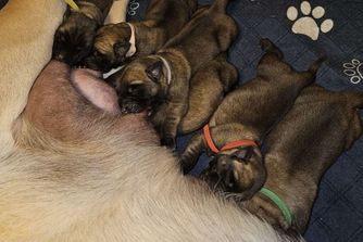 Such a great experience working with Domenic, and his family at Hooligan Mastiffs! From his response time to my first inquiry, to keeping in touch prior to pickup day. They clearly take pride in making sure the puppy you’re taking home has been well cared for from the beginning, socialized, and ready to be a part of your new family. SWENk has been the sweetest addition to our every day life!