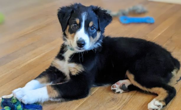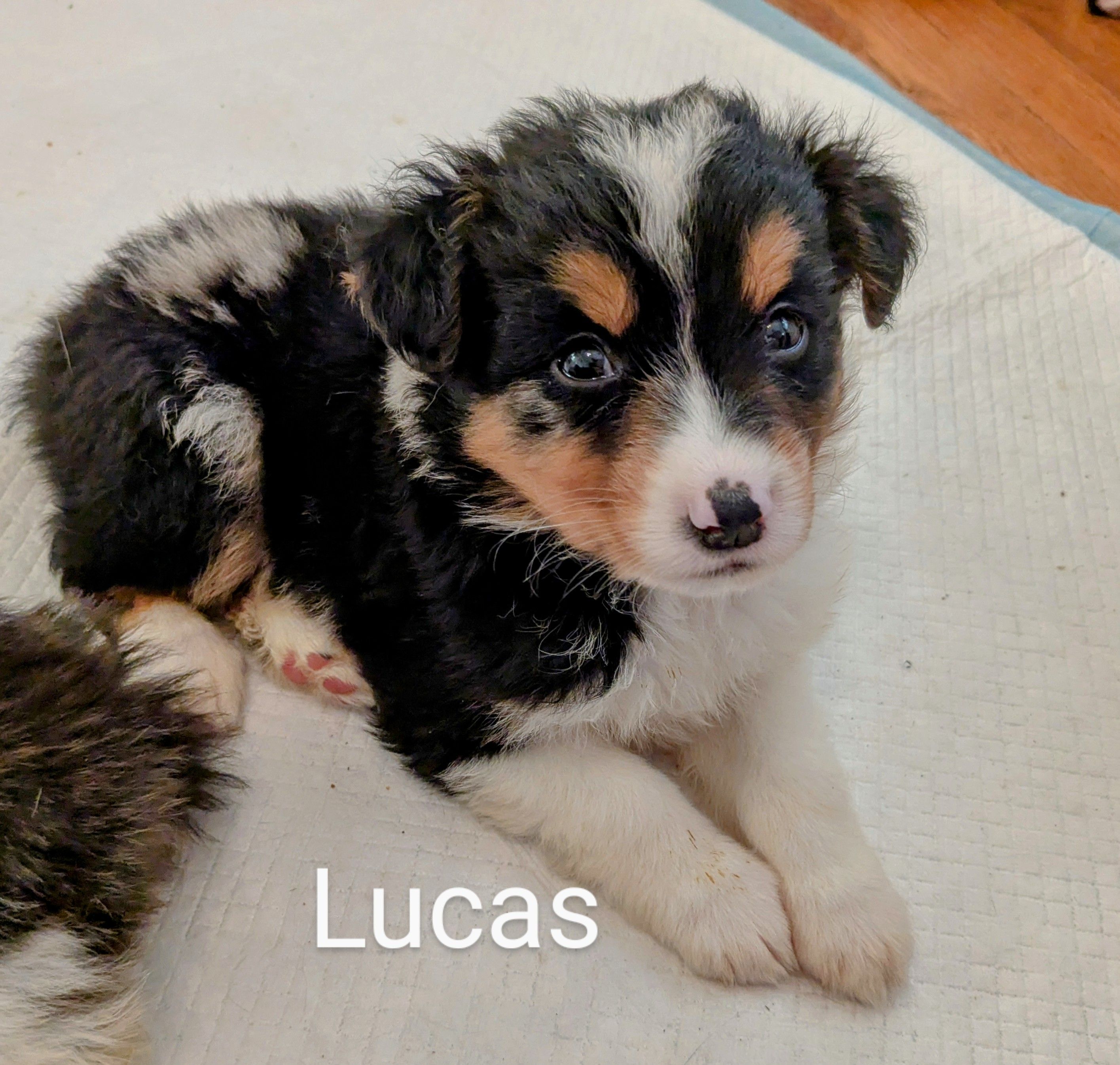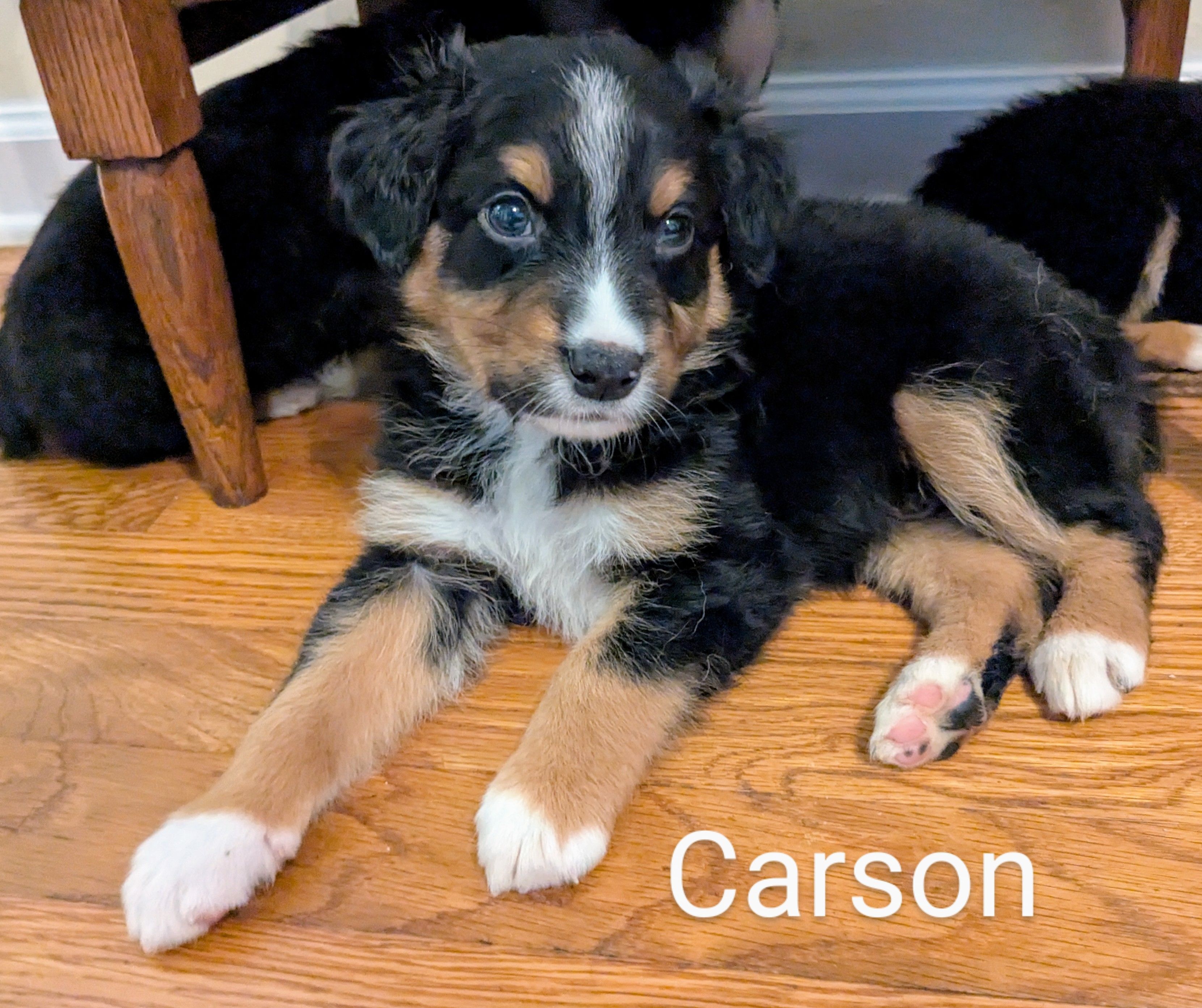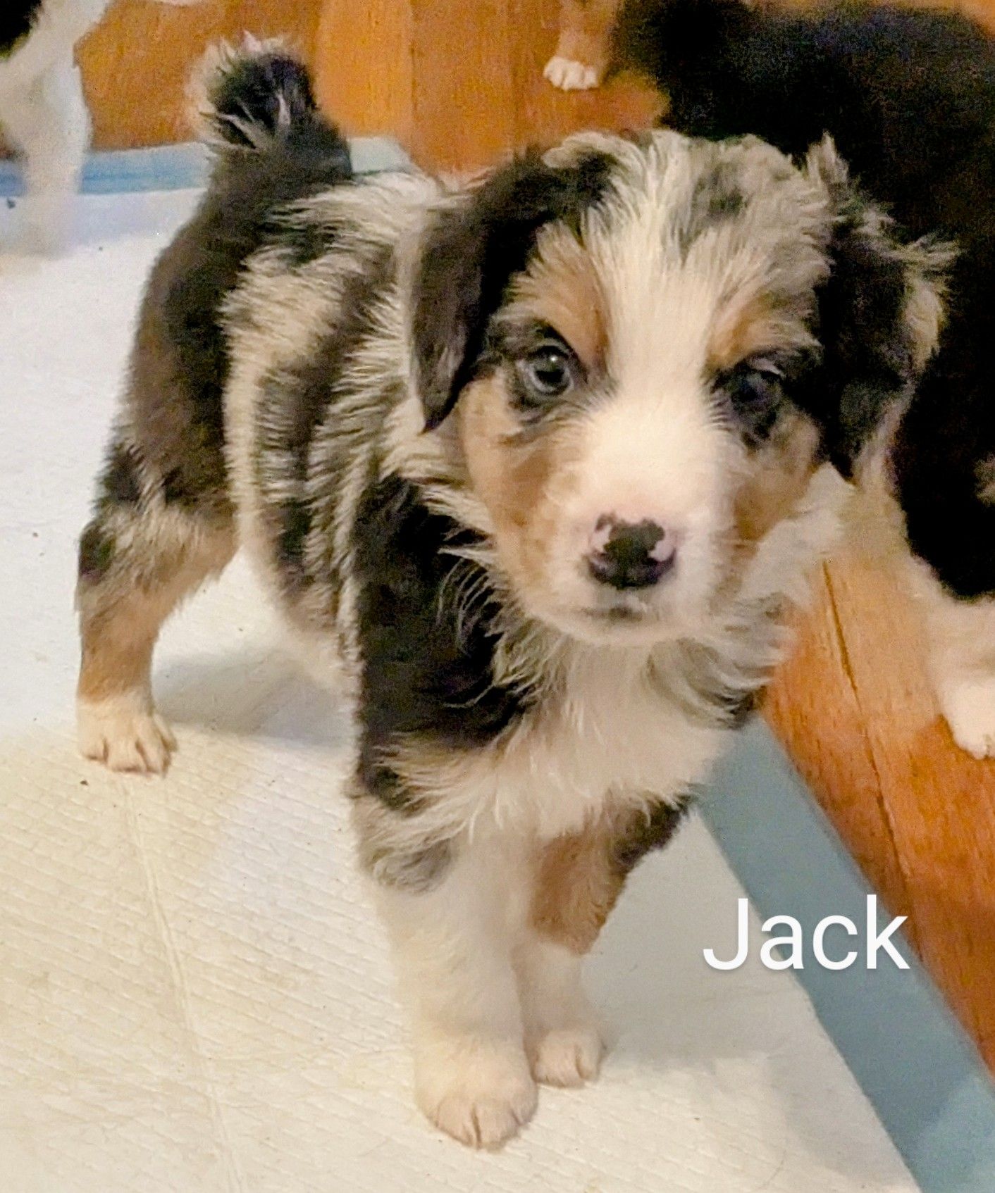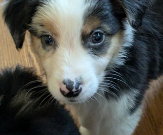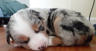 Our Golden Retriever puppies include golden and light golden. Aussiedoodle puppies include brown and white, sable, apricot, blue merle, red merle, black phantom, black and white, black tri-color, red phantom, and red tri-color. Australian Shepherd puppies include red merle, blue merle, black tri-color, and red tri-color. Colors will vary depending on the parent dogs.
