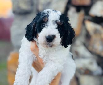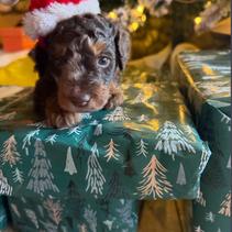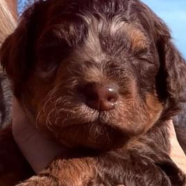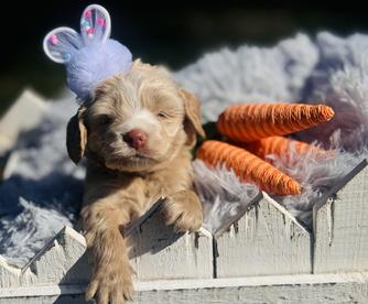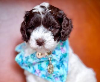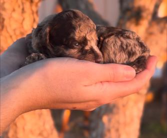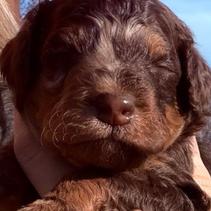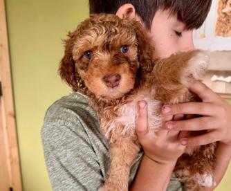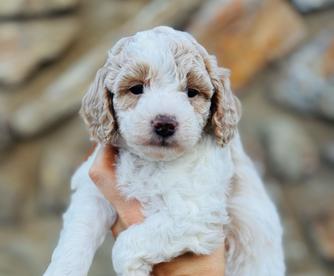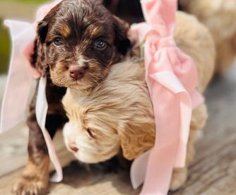 Our Goldendoodle puppies include cream, apricot, chocolate, black, merle, and parti. Cockapoo puppies include merle, brown, red, brown and white, golden, and cream. Colors will vary depending on the parent dogs.