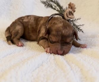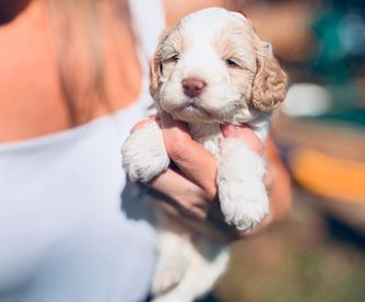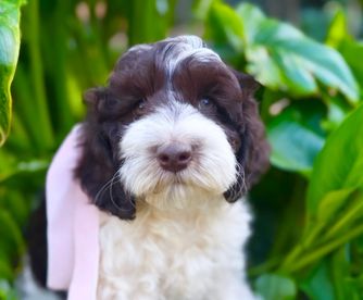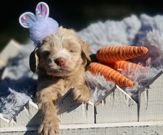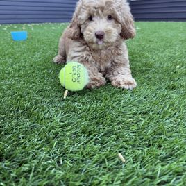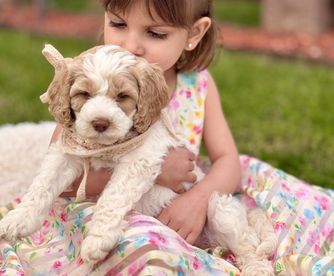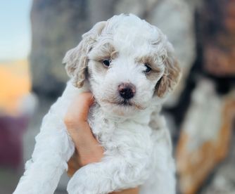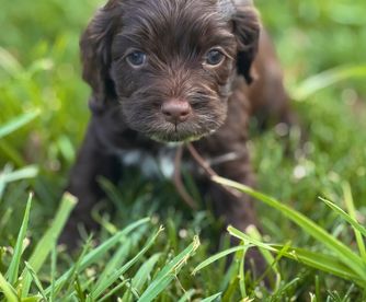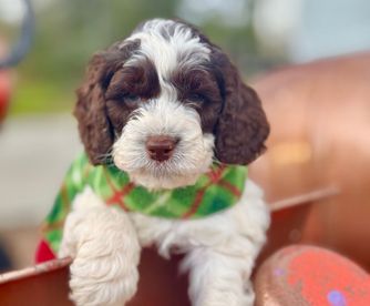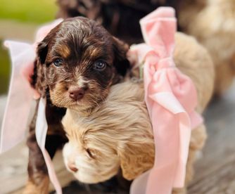 Our Cockapoo puppies include merle, brown, red, brown and white, golden, and cream. Goldendoodle puppies include cream, apricot, chocolate, black, merle, and parti. Colors will vary depending on the parent dogs.