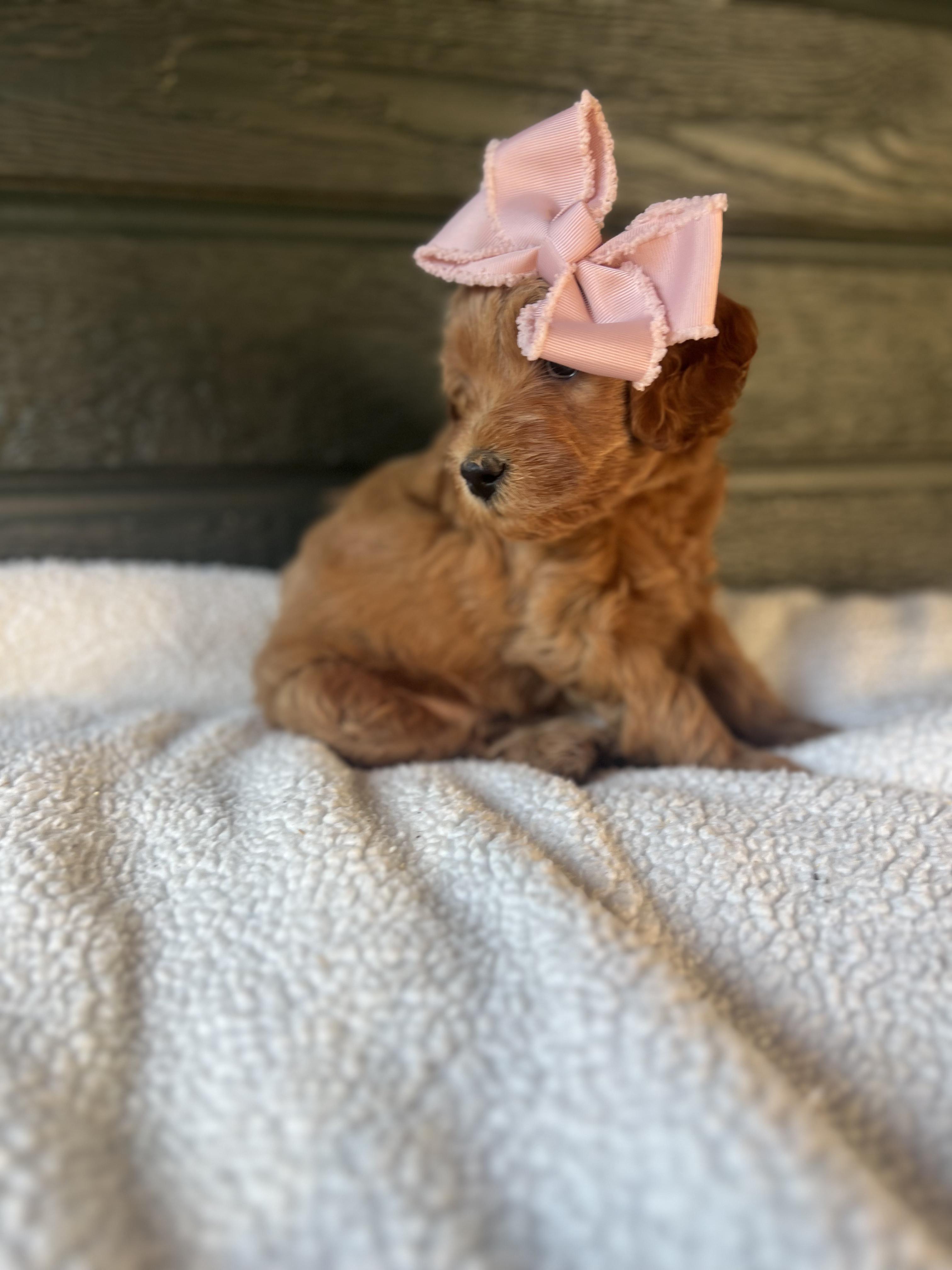 Our Goldendoodle puppies include petite, miniature, and medium sizes. Cockapoo puppies are mini size. Sizes will vary depending on the parent dogs.