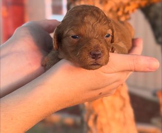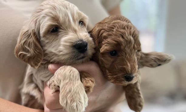 Our Cockapoo puppies are mini size. Goldendoodle puppies include petite, miniature, and medium sizes. Sizes will vary depending on the parent dogs.
