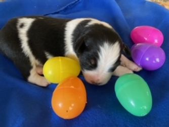 We lost our beloved mix rescue suddenly. My dad was telling me stories about one of his favorite dogs... Spur. Spur was a Black Tri and stunning! With a empty house and a empty heart my dad bought my family our first Aussie Cooper. He then encouraged us to buy a female and possibly breed the two since we already have the sheep farm and knowledge of clicker training our dogs. So, we did!