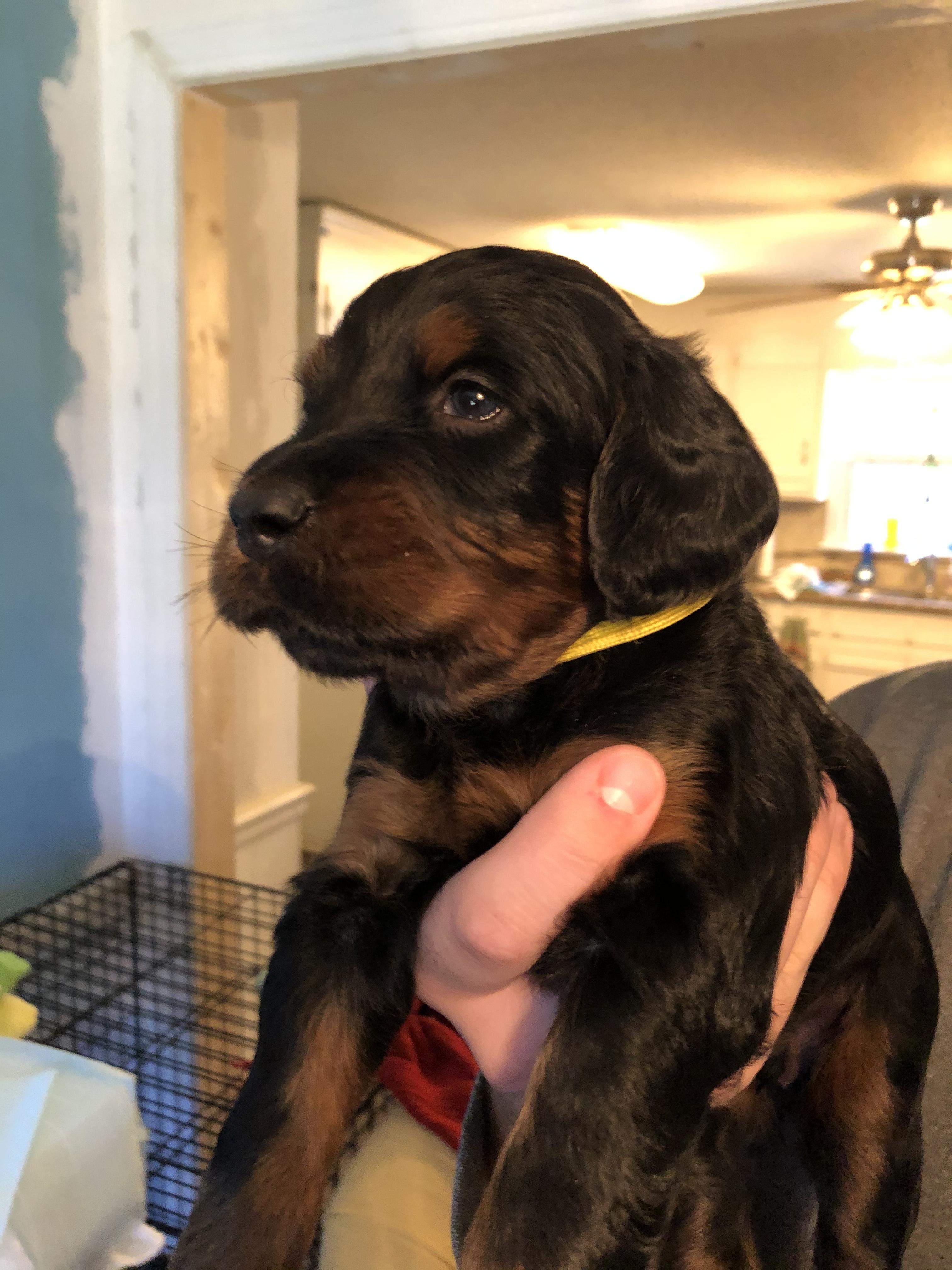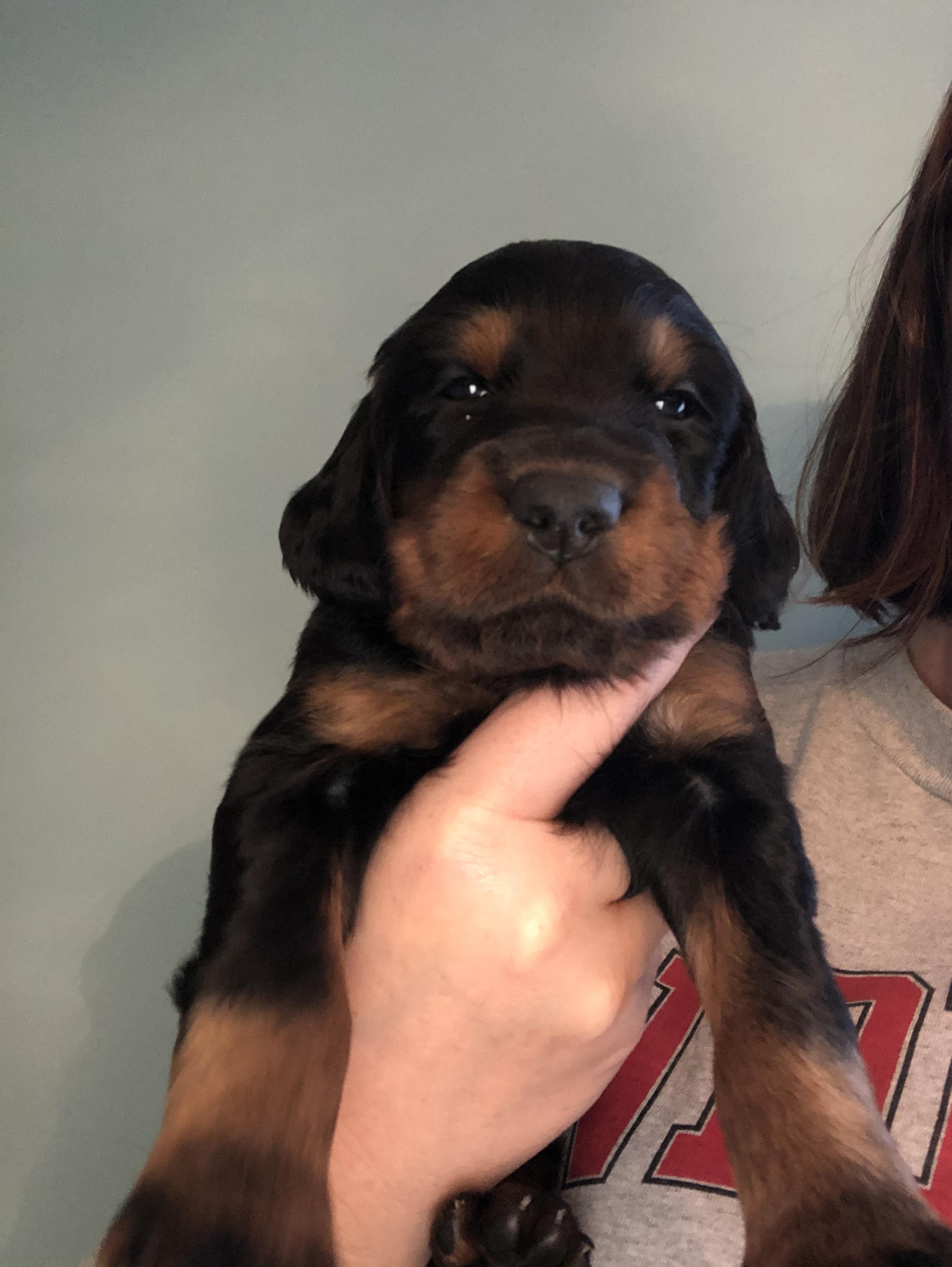 I'm Carrie G., the breeder behind Hopper Grass Gordon Setters located in North Carolina. We are dedicated to providing an amazing family companion for you to enjoy for years to come. Gordon Setters are an active breed that require regular exercise and space to run. We've set-up our property to be a Gordon Setter dream, with nearly three acres of fenced-in roaming space. Our puppies are bred to be loving family members but still retain the Gordon Setter hunting instincts.
