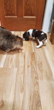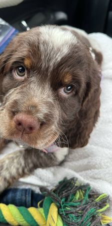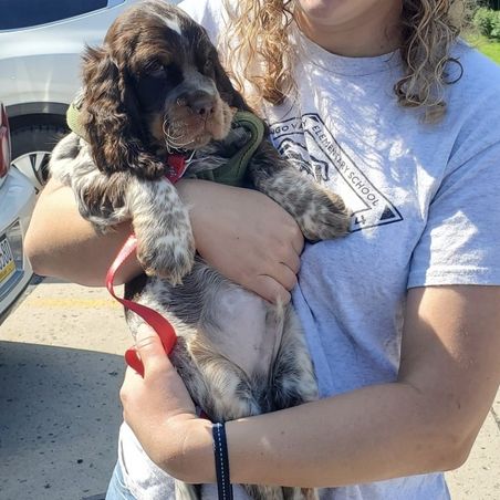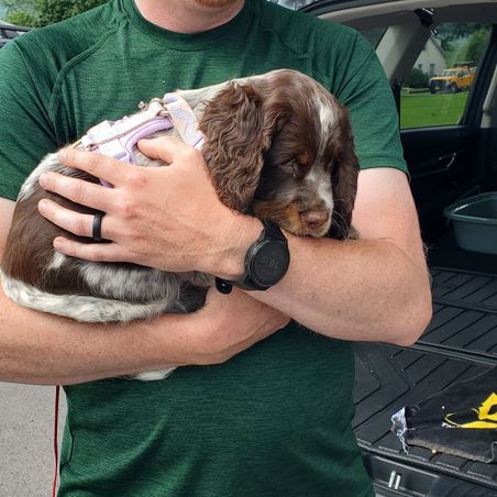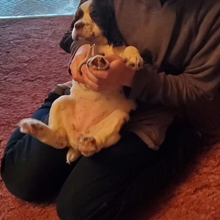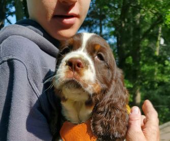 We had a wonderful experience with Hoppin Honey Homestead. I saw Commander pop up in one of my Springer groups, and I thought he was adorable. I commented and heard from Jenny almost immediately. Within just a couple of hours we were on the phone with her. I was completely at ease and knew that I definitely wanted to adopt through Hoppin Honey. They were fantastic. Jenny was very thorough with all of Commander's info including his health check-ups and what we needed to do next. We went to go adopt him the next night. Jenny had an amazing take home bag filled with everything we would need for the first weeks or so. Commander is an excellent puppy, and is making himself right at home. We feel so lucky to have adopted him through Jenny!