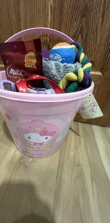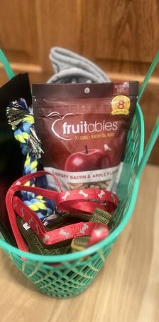 We got the puppies going home baskets prepped yesterday, not include in the photos is the medium size bag of food.
