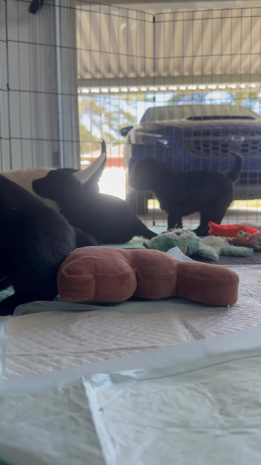 We had some visitors yesterday, pups are learning easy and no bite. We also upgraded our pen today! So excited to watch these guys grow! We get our first round of vaccines Wednesday