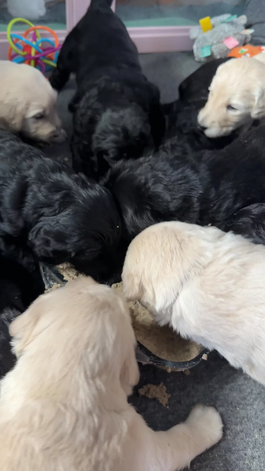 Our first puppy mush feeding! Can you believe everyone’s almost four weeks old?!