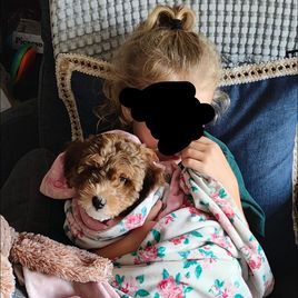 Melody was so responsive and friendly when we inquired about our puppy. She was very accommodating to meet with us, and we are so grateful to her for our little guy. Her passion and love for her pups is very apparent. Our new pup is so friendly, cuddly, socialized, smart and healthy. He has been such a joyous addition to our household. I would highly recommend Melody and her puppies to anyone that is looking into this breed! :)