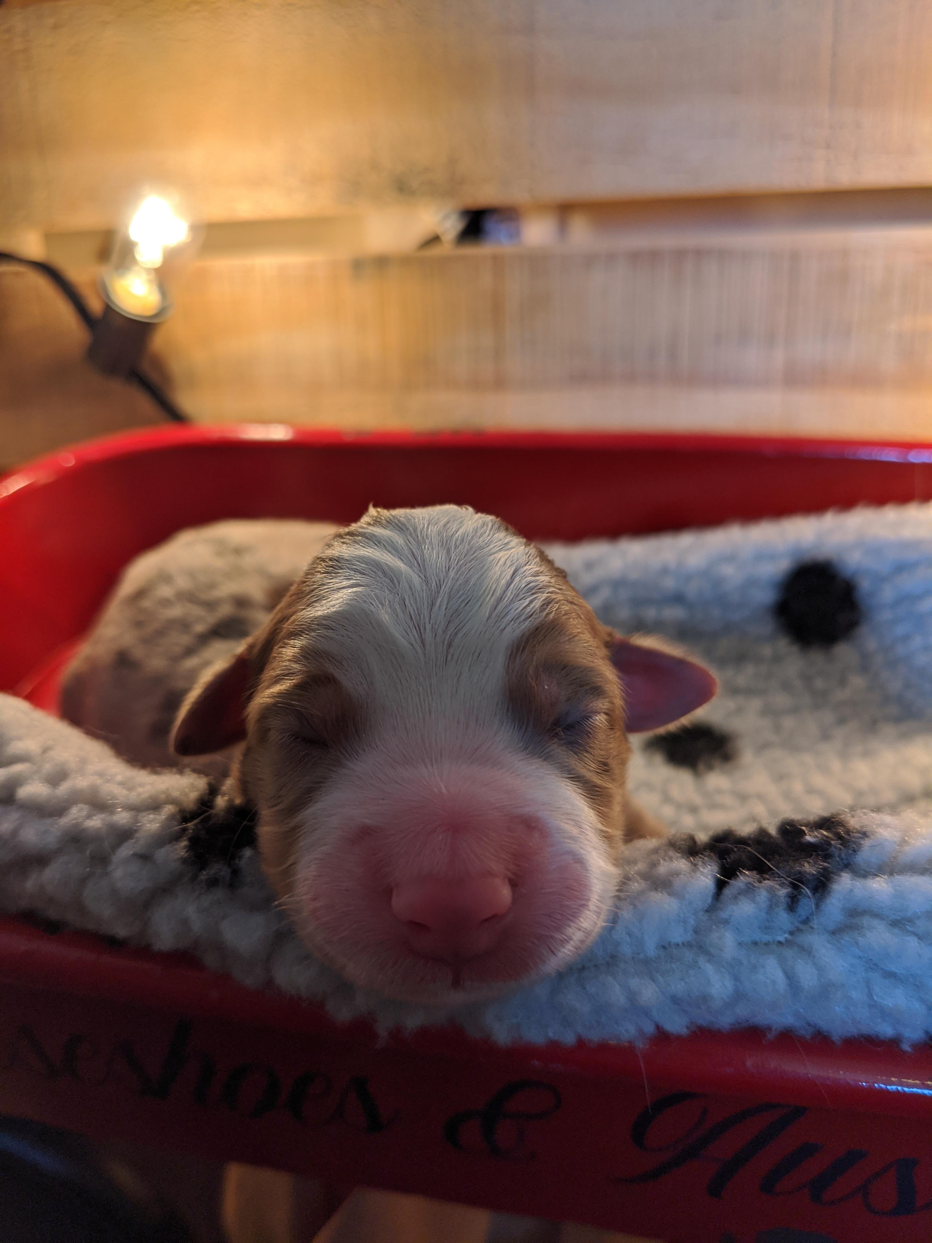 Our puppies include blue merle, black tri, red tri, and red merle. Colors will vary depending on the parent dogs.